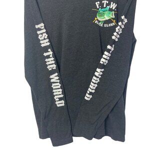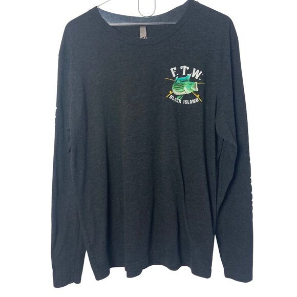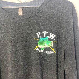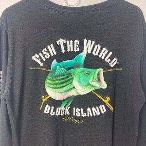 Fish The World Block Island RI Long Sleeve Tee Large Striped Bass Graphic
