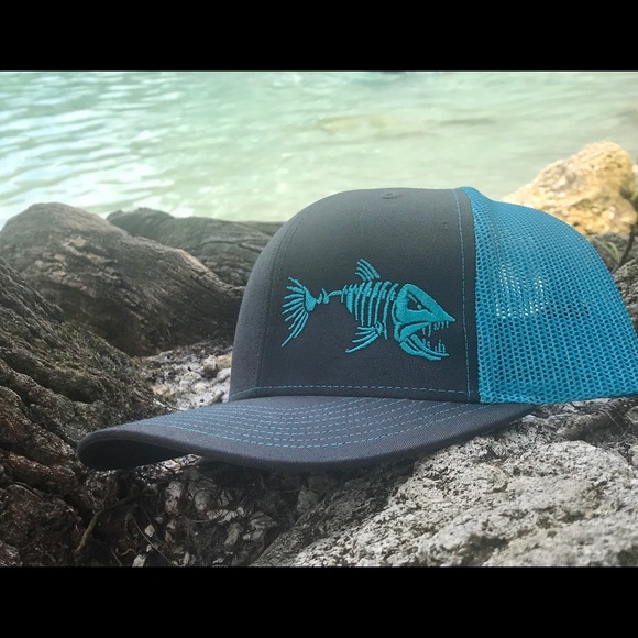 Unique fish bones hat. Richardson 112. Turquoise black. Snapback. many colors available NWT