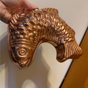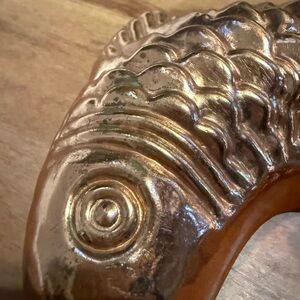 Enhance your space with this stunning gold fish-shaped wall decor. Perfect for adding a touch of elegance to any room or perfect for a camp! It is heavier than it looks! Made in Switzerland
