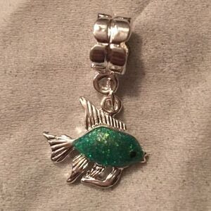 Beautiful green sparkly zinc alloy fish charm. Will fit Pandora. Just as cute! Much cheaper alternative. Super cute! New without tag