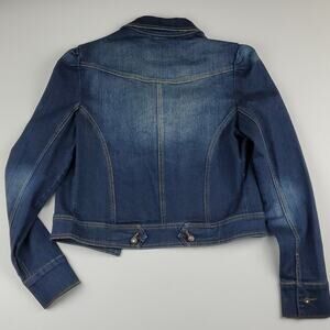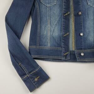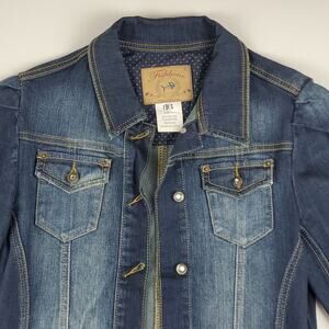 Fishbone Jeans Denim Jacket Faded Distressed Jeweled Button Long Sleeve Women's Size Large