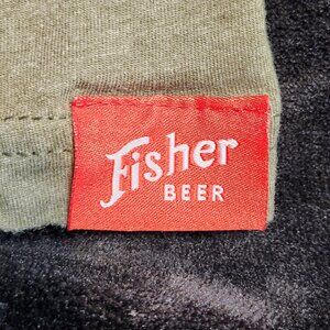 Gray/Brown-ish color with red and white Fisher Beer logo.