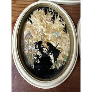 Fisher Pictures Milkweed Pressed Flowers Silhouette Reverse Painting Set Of 3. Large one is 10x5.5. Frame has pieces missing. Smaller two are 6.5x4.5 inches. Please ask any questions amd check out my other items. Have a joyful day hb1 orange shelf