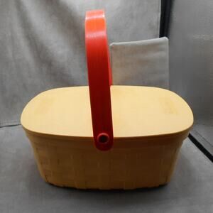 Fisher Price 1989 Pack-A-Picnic Tan Picnic BASKET w/Red Handle 2109 Fun w/Food. Vintage Fisher Price Fun with Food Picnic Basket is classic 1980s! Looks like previous owner kept crayons in their picnic basket. Inside does have color marks. Please see pictures.