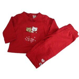 Fisher Price Girls 2-Piece Outfit 6/9 Mos Red Shirt & Pants Bear Hugs & Kisses