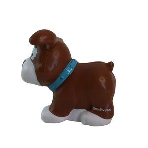 Enhance your child's playtime with the Fisher Price Little People Brown Puppy Dog Figure. Comes with an orange bed and food bowl accessory for imaginative fun.