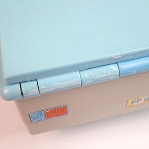 Car is missing the windshield frame. Trailer has color fading/yellowing on one of the flaps. Decals have edge wear. General scuffs/scratches typical of age and use. Both roll smoothly and hook together without issue.
