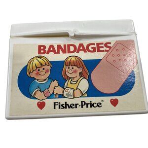 Fisher Price Medical Kit Toy Doctor Set Black Bag Tools Stethoscope Bandage 1987
