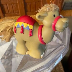 This 2002 Fisher Price Nativity House is in excellent condition. Two side pieces. Two figures! Musical! Hopefully someone needs a nice house to go with their figures! This set has the manger, two side pieces, one baby Jesus, one camel.