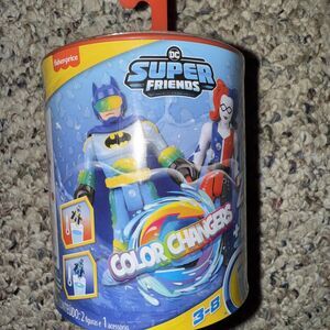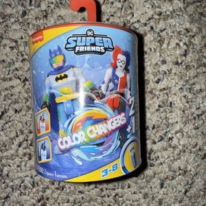 The Fisher-Price Imaginext DC Super Friends Batman Harley Color Changers Figure Set includes two pieces featuring Batman and Two-Face characters in a multicolor superhero theme. Made of plastic, this playset is designed for children aged 3 to 8 years and is inspired by the TV show "Friends." The figures are part of the Imaginext line by Fisher-Price, allowing kids to engage in imaginative play and storytelling with these iconic superhero characters. Additionally, the figures have color-changing capabilities, adding an interactive element to playtime.