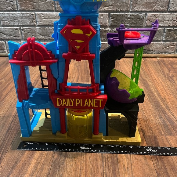 Explore Metropolis with the Fisher-Price Superman Playset. Features bold colors and iconic design. Perfect for superhero adventures. (No action figures)
