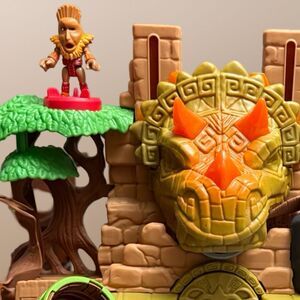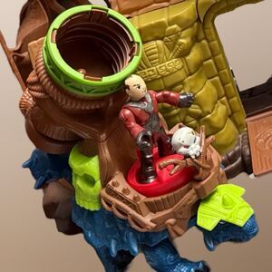 Turn Warrior on third Power Pad to load the “lava” boulder for the hammer swing Lava ramp, trap door, jail, swinging rock hammer and snake drop add to the imaginative play!