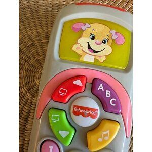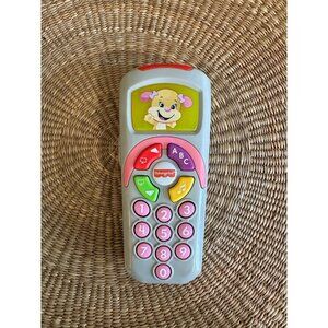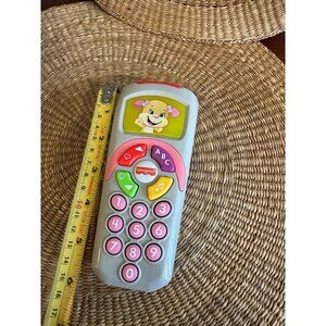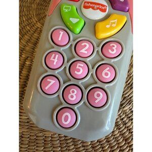 Interactive toy remote with colorful buttons that play music, ABCs, and numbers. Great for pretend play and early learning fun!