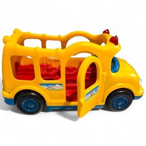 See Pics. Tested and working! Lights and sounds function great. This 2005 Fisher-Price Little People Bus comes with 2 original figures. Features a fun animated face, red stop sign, and carry handle—perfect for interactive play or vintage toy collections. No batteries included.