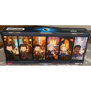 You are purchasing a Fisher-Price Little People Doctor Who TV Series BBC Collector Set. It celebrates 60 years of time and space with this special edition set. Fans from across the Whoniverse can celebrate their love for the heroic Time Lord with this set. It features 6 Little People figures styled like different incarnations of the Doctor. From exploring the universe with various companions to defeating Daleks, Cybermen and other terrifying foes with the help of their Tardis and sonic screwdriver, the Doctor has been delighting fans for generations. This set includes 6 for generations of the traveling Time Lord including the Nineth, Tenth, Eleventh, Twelfth, Thirteenth, and Fifteenth Doctor. This Fisher-Price Doctor Who collector set is brand new sealed in the original box. It comes from a non-smoking home.