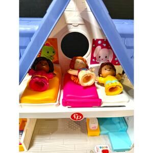 Electronic home playset that folds for storage with 3 best friend figures and 5 additional play pieces.