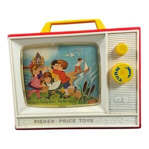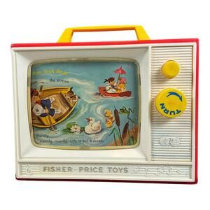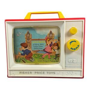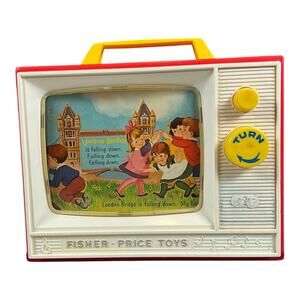 Step back into classic playtime with this vintage Fisher-Price Movie Viewer Theater, complete with two original picture story films: “London Bridge” and “Row, Row, Row Your Boat.”