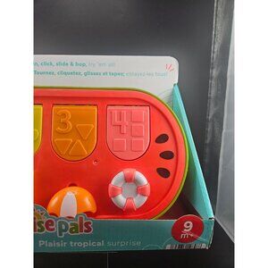 This colorful Fisher-Price Paradise Pals Tropical Fun Pop-Up toy engages young minds and fine motor skills with its interactive features. Designed for children aged 9 months and older, this vibrant toy includes spinning, sliding, clicking, and bopping mechanisms to promote cause-and-effect thinking. The watermelon-themed activity center provides endless fun while honing memory and coordination development in the early learning stages. Constructed with child-safe, durable materials, it is lightweight for easy handling and compact for convenient storage.
