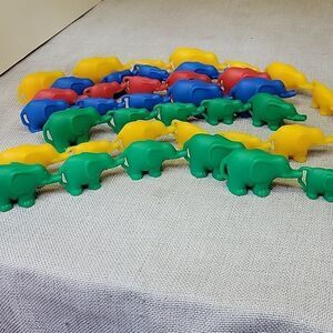 Mini Plastic ELEPHANTS CONGA LINE TAIL GRABBING MULTICOLOR . Great for a toddler learning to count.