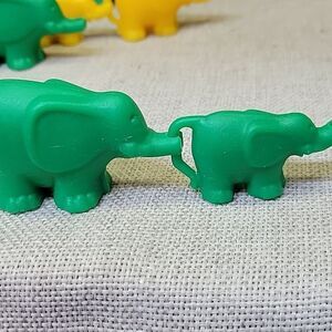 Mini Plastic ELEPHANTS CONGA LINE TAIL GRABBING MULTICOLOR . Great for a toddler learning to count.