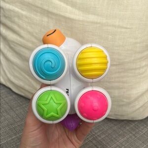 Delight your child with this colorful unicorn toy featuring vibrant purple, yellow, and blue accents. Perfect for imaginative play. In gently used condition.