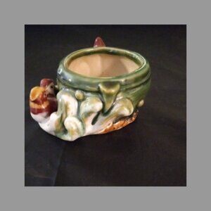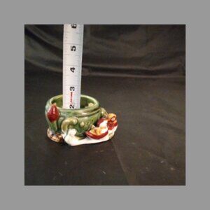 Fisherman Fortune Wood Ducks Planter .Beautiful Design Wood Duck on the side of this classy Highly Glazed Planter. Very Eye catching. It measures 3 inches across. I apologize as I did not include that photo.