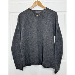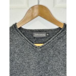 Fisherman Out Of Ireland Men’s Gray Pullover Lambs Wool V-Neck Sweater Size XL