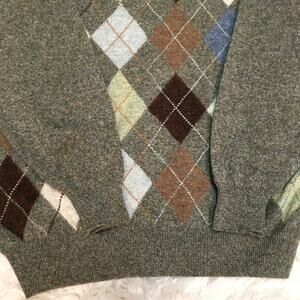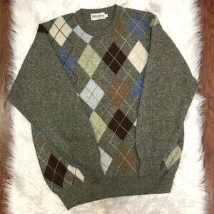 Fisherman Out Of Ireland Pullover Argyle sweater 100% Lambs Wool Sz Large preppy