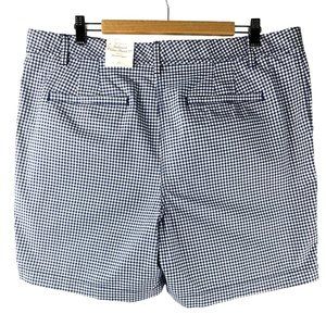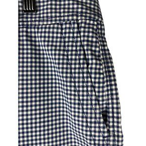 Talbot's Relaxed Fit Chino Short, Navy Blue and white Gingham in a Women's Size 16. Sits below waist, above knee length, Fly front with button closure, 2 Front side slashpockets, and 2 back welt pockets, Imported. 7 " inseam.