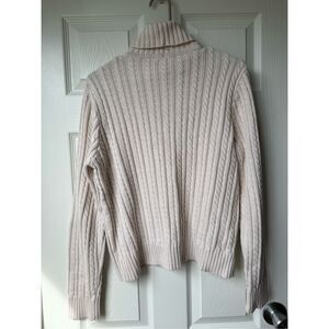 Fisherman Sweater 100% Cotton Vintage Large Cream Turtle Neck Chunky Heavy Winte