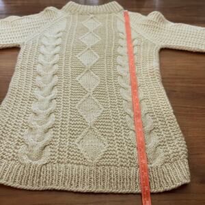 Fisherman Sweater Unisex Size M Crewneck Cable Knit Diamond Cream Wool Natural
