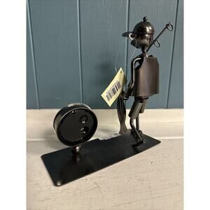 Fisherman With Fishing Pole Fish 7” Metal Display "Wine Bodies" Desk Clock