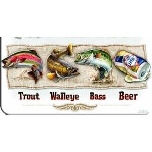 Fisherman's 4 Basic Food Groups Cutting Board Tempered Glass Trout Bass Beer NEW
