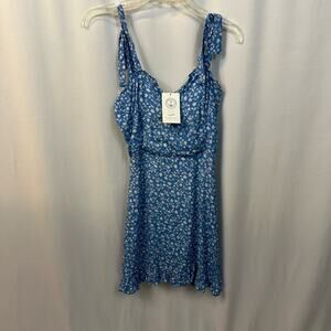 Fisherman's Daughter Blue Floral Tie Strap Bodice Style Mini Dress Small NWT New