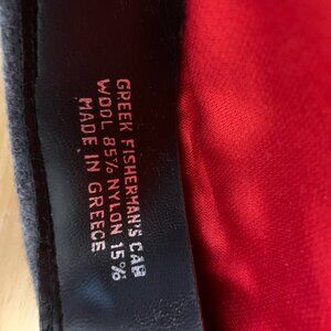 Greek Fishermans cap for man or woman. Cap is clean and without rips or stains. Size is 7 3/8 and cap has a designed bill. Made of 85% wool and 15% nylon.