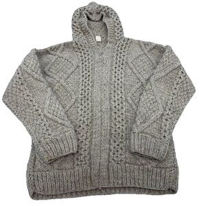 Fisherman’s Hooded 100% Wool Sweater Women’s Gray Large By Yarnia