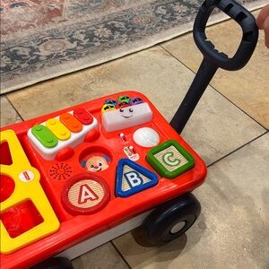 Fisher-price Baby Walker 135+ songs teach 123s, ABCs, shapes and more shapes.