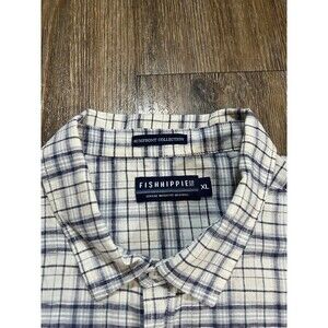 Fishhippie Mens XL Long Sleeve Blue Plaid Button up Linen Rumfront Collection