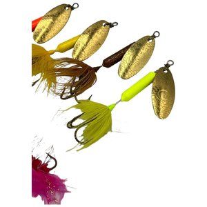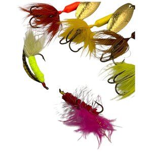 Fishing Lot 2 Flies and 4 ROOSTER TAILS 1/4 oz Chartreus Brown Orange Yellow