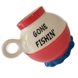 Fishing Lure Bobber Ceramic Mug Bigmouth Inc Gone Fishing Cup Tea Coffee 20oz Condition is pre owned...no chips, cracks or discolorations. Holds 20oz. Please see photos for detailed condition. Made by Bigmouth Inc