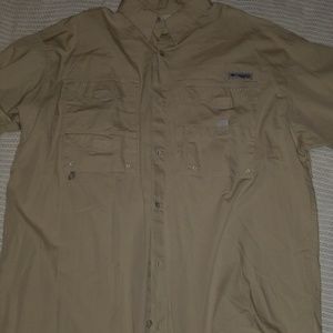 Red Columbia short sleeve size medium. Light green Magellan long sleeve size medium. Tan Columbia short sleeve size large. Blue magellan long sleeve size large. All great condition.
