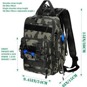 🧿Adjustable multi-use fishing bag: Multiple straps can be freely matched and more ways can be carried out. By adjusting the shoulder straps, our fishing backpack can be used as a backpack, sling shoulder bag, handbag, chest bag and so on. This fishing bag is the best choice for you to carry when you go out.