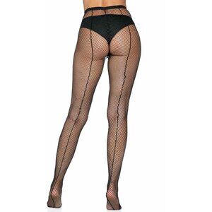 Fishnet Back Seam Tights Women's One Size OS Black Backseam Pantyhose