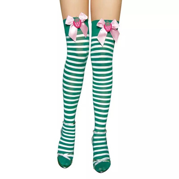 Sexy Green And White Thigh High Fishnet Stockings With Bow Ladies Fancy ultra-thin mesh