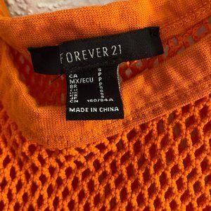 Super fun, bright orange, fishnet tank from Forever 21. It is very cropped and looks great over a bikini.