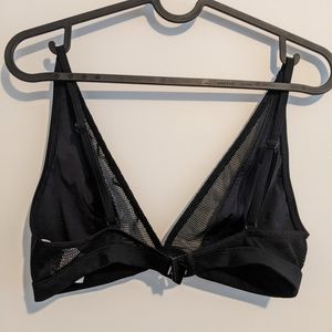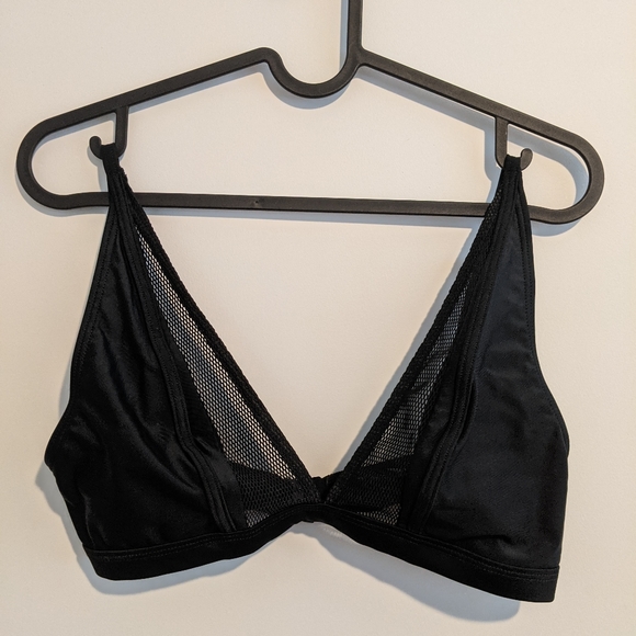 A very flattering and simple bikini with fishnet detailing. No boob patting. Clasp closure on back. Adjustable straps. Bottom is size 4. Top is size small (I used it once as a 34A for reference)