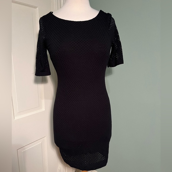 Banana Republic black short sleeve fishnet sleeve and overlay above the knee dress. Size 2 petite