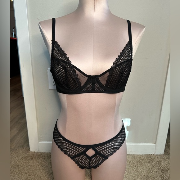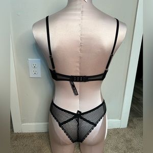 Black Victoria’s Secret fishnet set. From the luxe lingerie collection. Unlined bra size 32C. Cheeky panty size S.