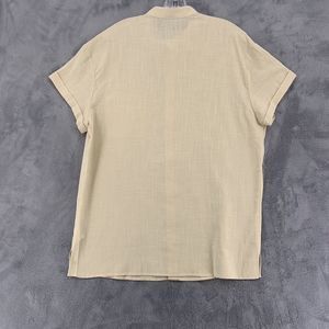 Fishpond Button Up Short Sleeve Cream Cotton Flax Short Sleeve Shirt Mens Large
