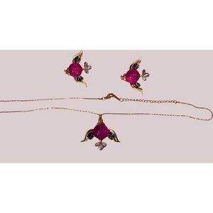 Fishy Bling Jewelry Set: 10K Electroplated Chain & Pink Glass Belly Fish Earring